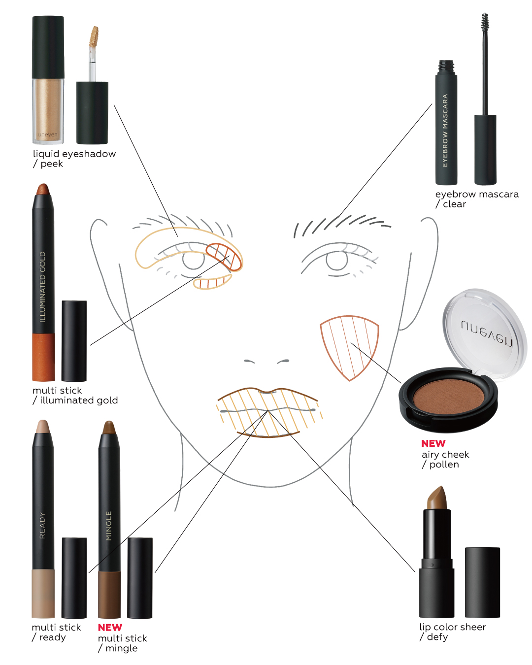 2:multi stick / illuminated goldを上下まぶた目頭側にのせる